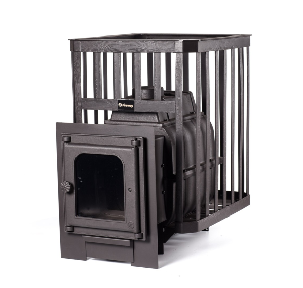 Печи серии «Паровар» от российского бренда «Fireway» характеризуются продолжительным сроком службы (гарантия производителя составляет 60 месяцев) за счет применения метода литья из высококачественного чугуна, толщины стенок топки в 10 мм, а также каменки, выполненной из кованой стали. Особенности модели «Паровар 18 Сетка-Ковка»: