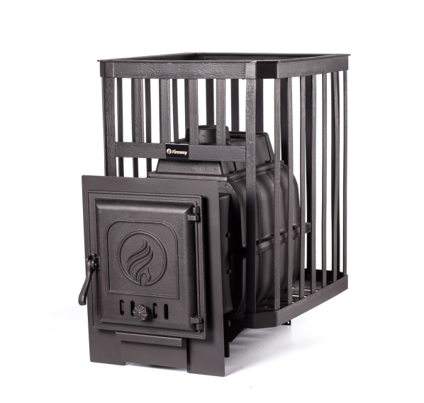 Печи серии «Паровар» от российского бренда «Fireway» характеризуются продолжительным сроком службы (гарантия производителя составляет 60 месяцев) за счет применения метода литья из высококачественного чугуна, толщины стенок топки в 10 мм, а также каменки, выполненной из кованой стали. Особенности модели «Паровар 18 Сетка-Ковка»: