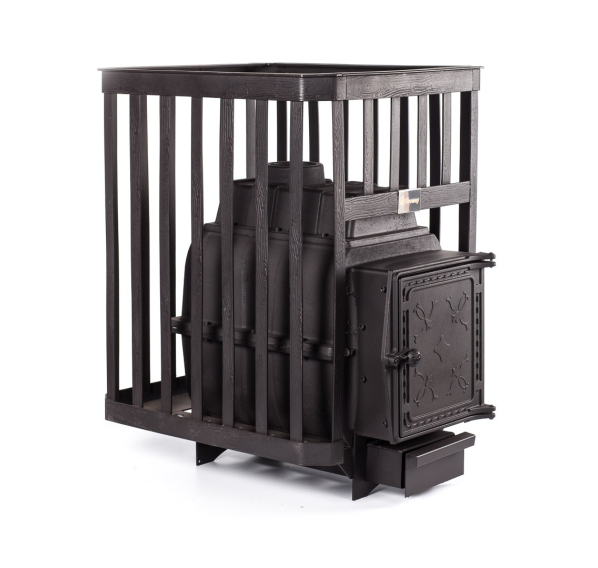 Банная Печь Паровар 18 Сетка-Ковка (K211) – модель дровяной печи-каменки с выносной чугунной топкой и обзорным термостойким стеклом в герметичной дверце. Расчетный объем парной и смежных с ней помещений – от 10 до 18 куб.м. Данная печь позволяет организовать в бане комфортный микроклимат с легким, мелкодисперсным паром и высокотемпературную «финскую сауну».