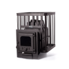 - масса закладываемых камней составляет 180 кг – равномерно распределяет тепло, продолжительное время сохраняет комфортную температуру, смягчает жесткое инфракрасное излучение от стенок топки, создает легкий мелкодисперсный пар.
