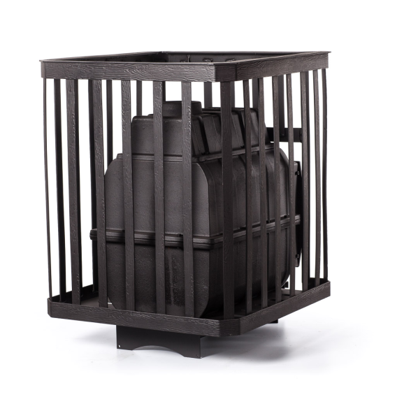 - каменка выполнена в виде сетки – используется кованая сталь, что придает конструкции необходимую жесткость и устойчивость;