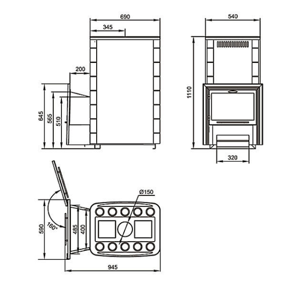 • При помощи регулируемых винтовых опор существует возможность удобно выставлять печь при монтаже «по уровню».