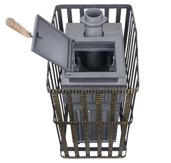 Банная печь “Гроза Ураган 18 (М)” с закрытой чугунной каменкой идеальна для традиционной русской парной и рассчитана на частое применение. При желании стальную сетку легко заменить на каменную облицовку, демонтаж дымохода при этом не потребуется. Печь максимально комфортна в эксплуатации: