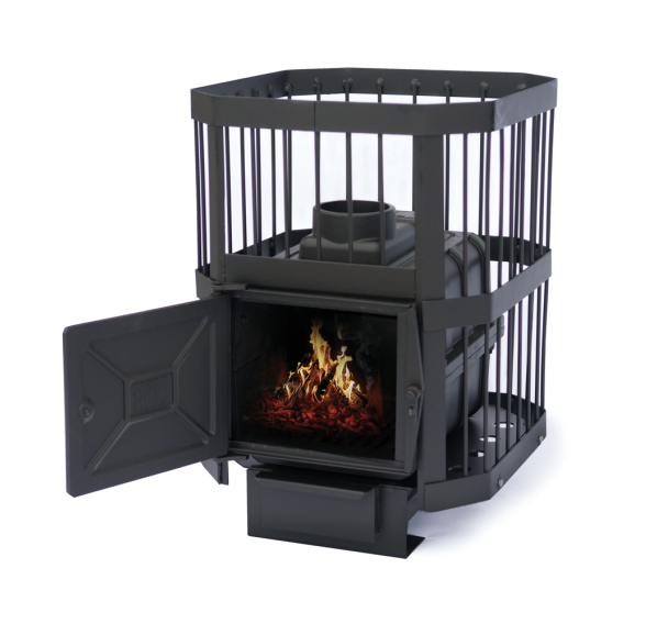 Печь “Сибирь 15” оборудована топкой со стенками толщиной в 10 мм, отлитыми по отдельности и собранными с помощью болтового соединения. Такое соединение, дополненное негорючими уплотнительными шнурами, гарантирует высокую герметичность и надежность топочной камеры. Стальной отбойник пламени повышает эффективность сгорания топлива и увеличивает коэффициент полезного действия печи. Открытая каменка вмещает до 100 килограмм камней и способна быстро и равномерно прогреть воздух и долгое время сохранять комфортную температуру в парной.