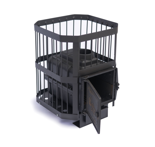 Банная печь, несмотря на большой объем использованного чугуна, усилиями дизайнеров компании “НМК” выглядит легкой и ажурной, а компактные размеры позволяют установить ее даже в небольшой парилке. Об удобстве использовании производитель также позаботился: вместительный зольный ящик, который одновременно отвечает за регулировку интенсивности горения, не нуждается в частой очистке, ручка дверцы имеет плавный ход и открывается одним движением. Топится печь дровами.