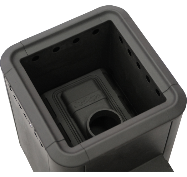 Печь “Сибирь 15” оборудована чугунной топкой со стенками, отлитыми по отдельности и собранными с помощью болтового соединения. Такое соединение, дополненное негорючими уплотнительными шнурами, гарантирует высокую герметичность и надежность топочной камеры. Открытая каменка вмещает до 70 килограмм камней. Несмотря на сравнительно небольшие размеры и вес печи, она способна быстро и равномерно прогреть воздух и долгое время сохранять комфортную температуру в парной.