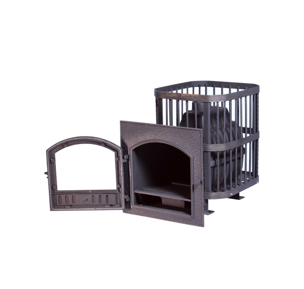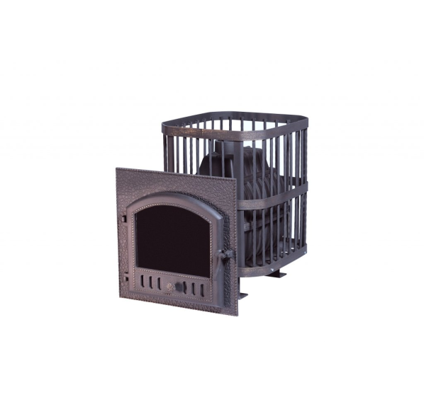 Чугунная банная печь от “НМК” очень надежна. Топка, выполненная из литых элементов, максимально герметична и способна длительное время сохранять свои рабочие характеристики. Чугунный отбойник перенаправляет поток газов и пламени в топке, способствуя повышению КПД печки. Печь топится дровами, но при необходимости в качестве дополнительного вида топлива может выступать бурый уголь. Открытая каменка вмещает до 180 кг камней, прочная сетка не деформируется и выдерживает длительную нагрузку.
