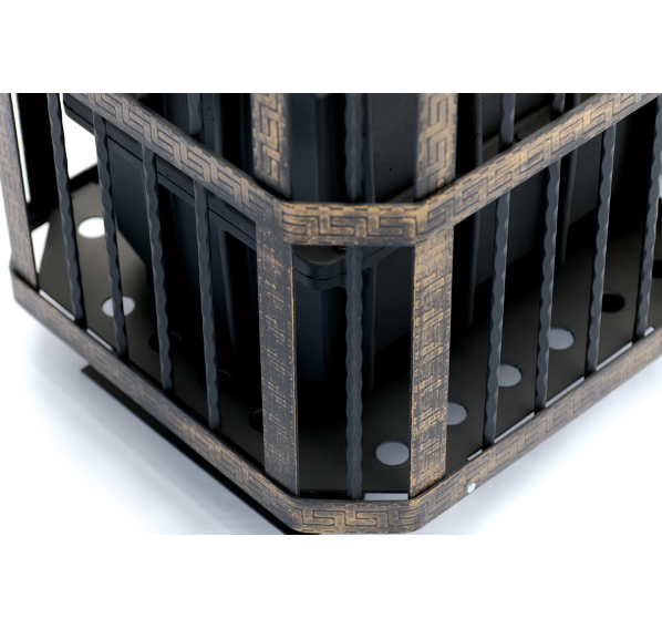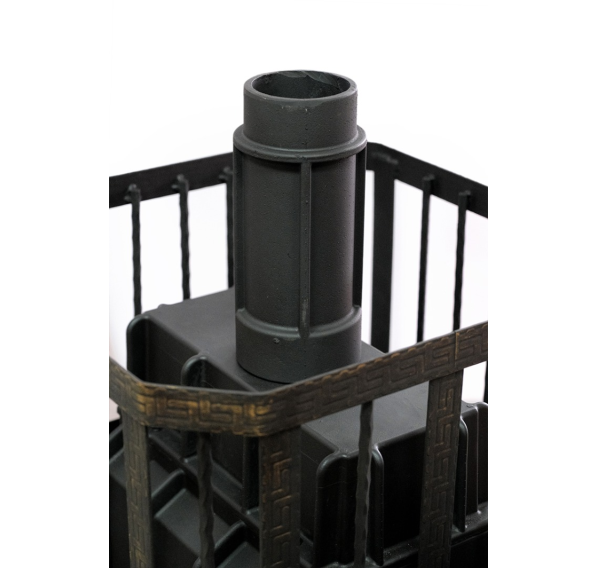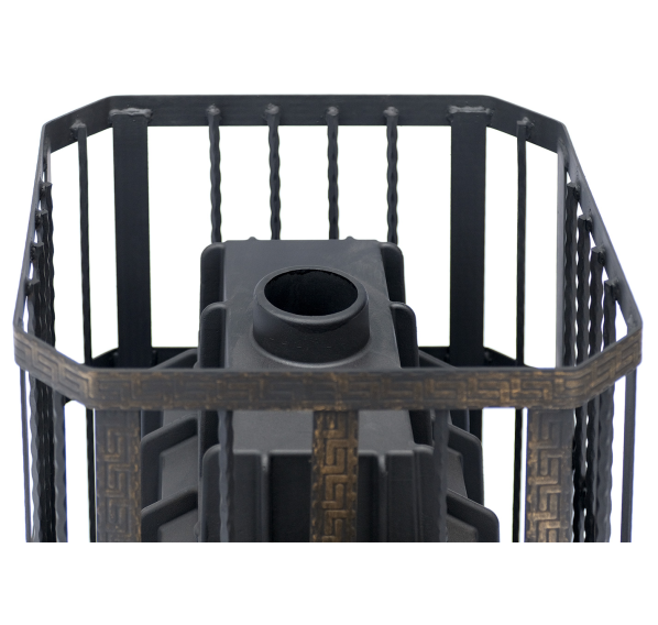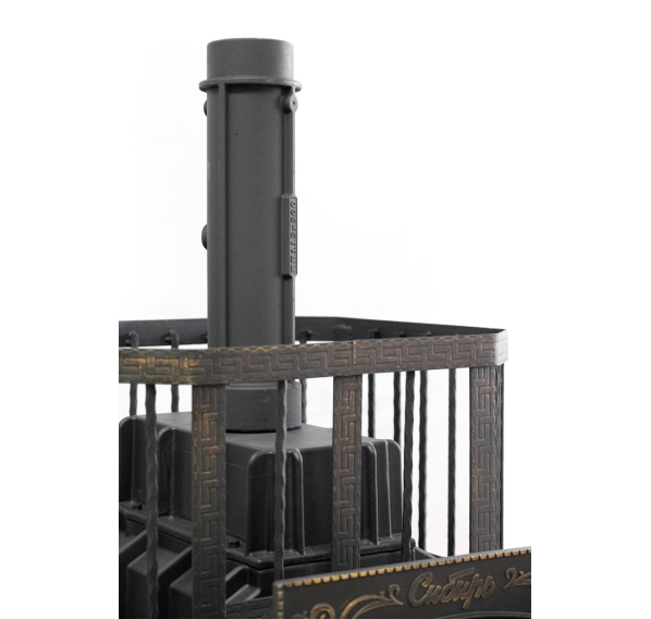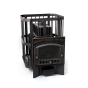 Печь изготовлена из высококачественного чугуна марки СЧ-15, который обладает отличной теплоемкостью, стоек к коррозии и перепадам температуры. При нагревании он дает мягкий, мелкодисперсный пар, идеальный для традиционной русской бани. Толстостенная топка имеет большой запас прочности и рассчитана на многолетнее использование. Сетка каменки не деформируется от нагрузки, топочная дверца из чугуна и стеклокерамики может открываться как с правой, так и с левой стороны.
