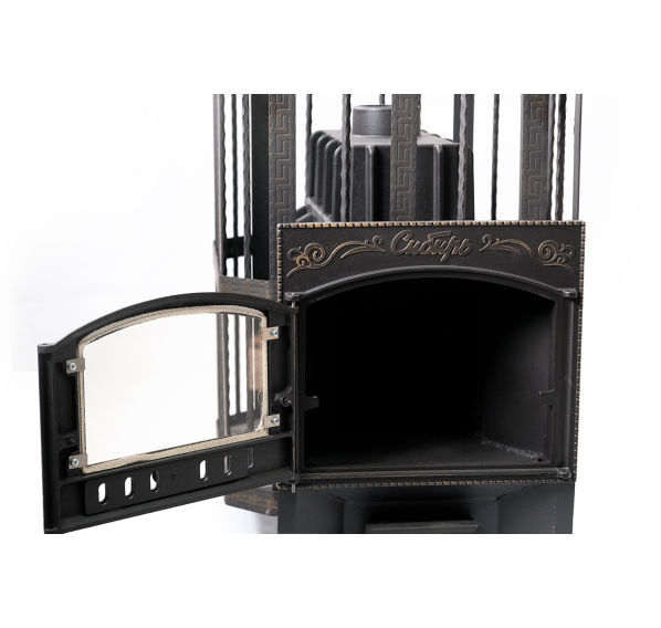 Подробнее о чугунной банной печи Сибирь-32 с каминной дверцей