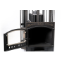 Чугунная банная печь “Сибирь-32” топится дровами, причем за счет увеличенной глубины топочной камеры подойдут и длинные колотые поленья. Вместительный зольный ящик под дверцей используется для регулировки интенсивности горения. Термостойкое стекло дверцы не запотевает и не покрывается сажей, долгое время оставаясь чистым благодаря системе обдува стекла.