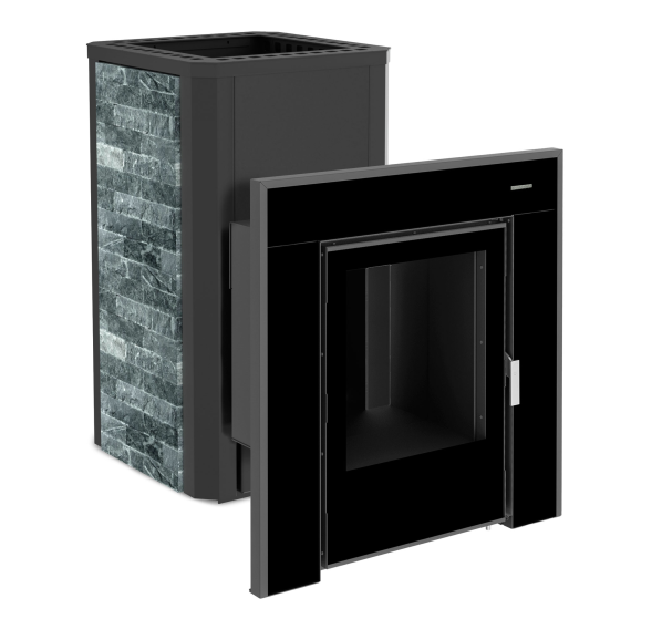 Банная печь с тонированным стеклом и талькохлоритом. Печь обеспечивает надёжное, продолжительное тепло, насыщенный пар и безусловный комфорт в бане или сауне.
