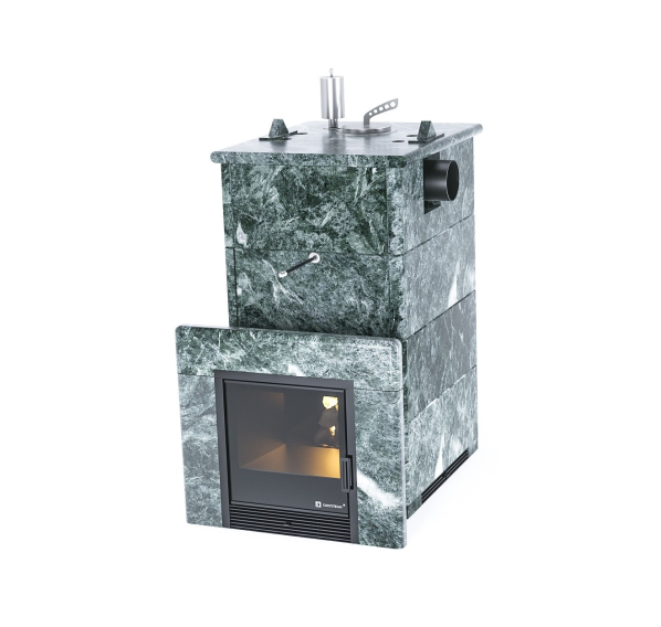 • в полноценной каменной облицовке или в трехстороннем каменном кожухе (на выбор: талькохлорит, змеевик, пироксенит, жадеит);