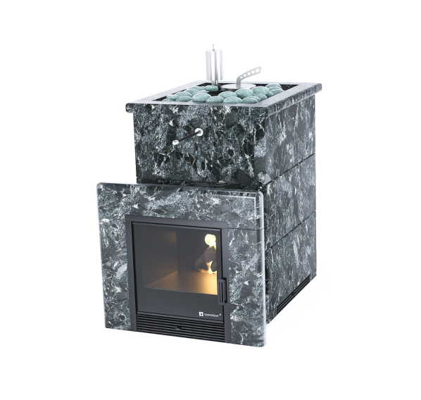 - в полноценной каменной облицовке или в трехстороннем каменном кожухе (на выбор: талькохлорит, змеевик, пироксенит, жадеит);