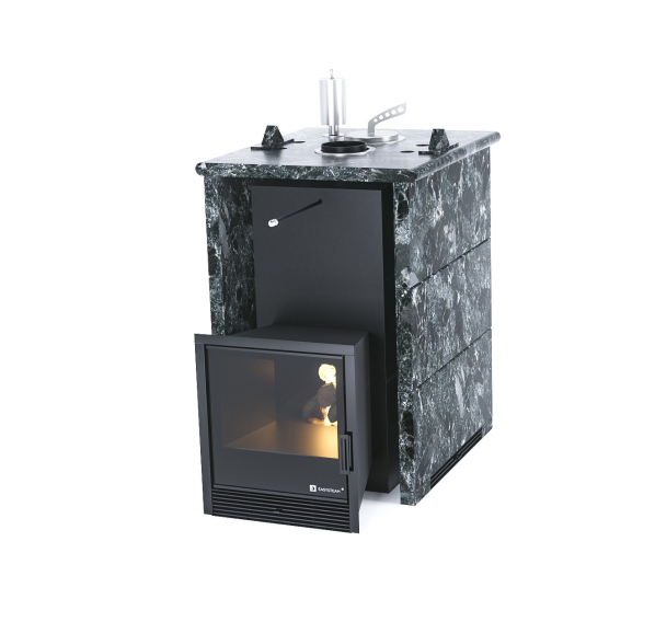 - Печь оборудована закрытой внутренней каменкой, вмещающей до 55 кг камней.
