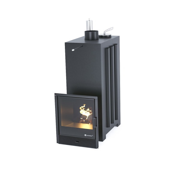 - Дверца топки с термостойким стеклом обеспечивает отличный обзор пламени и позволяет контролировать горение.