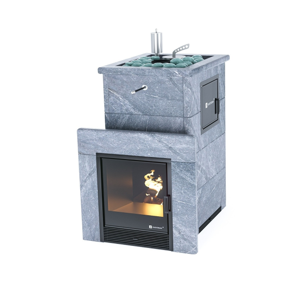 Банная печь Изистим Сочи М2 в полноценном кожухе с открытым верхом Талькохлорит
