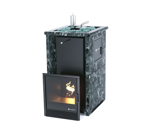 Банная печь Изистим Сочи М2 в трехстороннем кожухе с открытым верхом Пироксенит