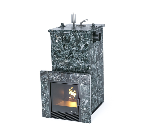 - в полноценной каменной облицовке или в трехстороннем каменном кожухе (на выбор: талькохлорит, змеевик, пироксенит, жадеит);
