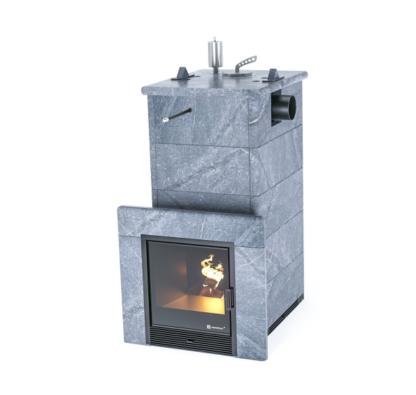 Банная печь Изистим Сочи в полноценном кожухе с боковым подключением Талькохлорит