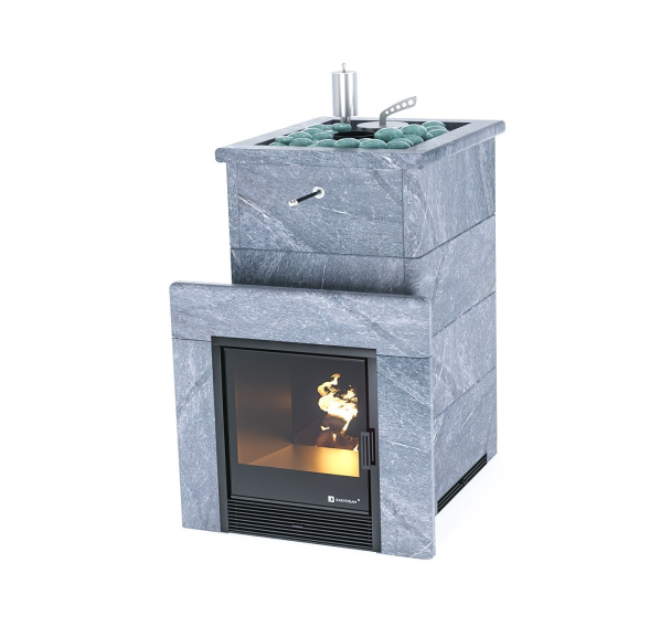 Банная печь Изистим Сочи в полноценном кожухе с открытым верхом Талькохлорит