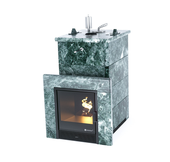 • в полноценной каменной облицовке или в трехстороннем каменном кожухе (на выбор: талькохлорит, змеевик, пироксенит, жадеит);