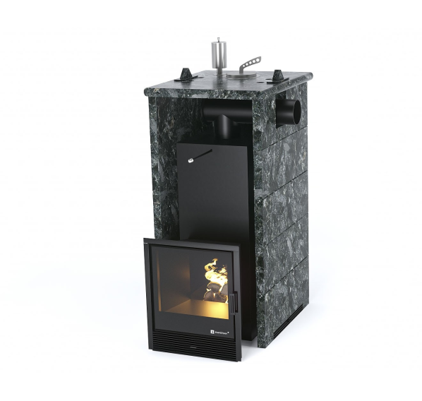 - в полноценной каменной облицовке или в трехстороннем каменном кожухе (на выбор: талькохлорит, змеевик, пироксенит, жадеит);
