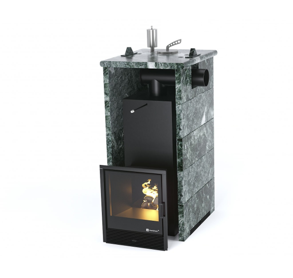 - в полноценной каменной облицовке или в трехстороннем каменном кожухе (на выбор: талькохлорит, змеевик, пироксенит, жадеит);