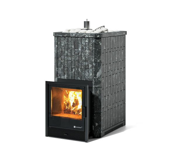 - Каменная облицовка служит дополнительным аккумулятором тепла и защищает от жесткого инфракрасного излучения.