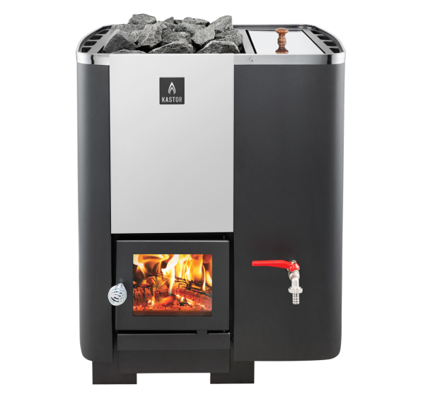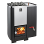 VO - резервуар для воды справа. Элегантная форма и передняя панель печи Karhu, выполненная из полуматовой стали, выгодно подчеркнут интерьер любой сауны. Объем парилки: 12-22 м3