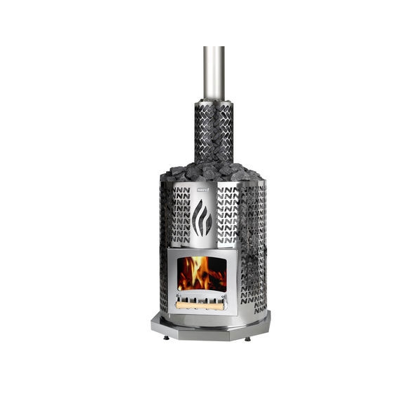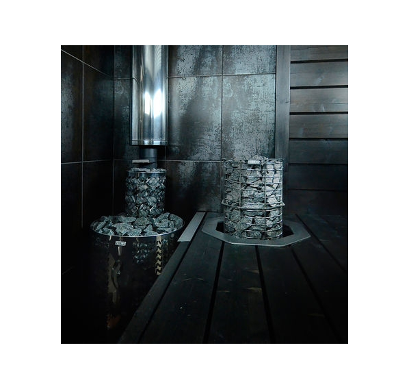 Сетчатый корпус. Стеклянная дверца. Нержавеющая сталь. Ø 550 мм. Объем парилки: 8-18 м3