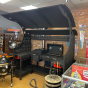 печь-мангал, навес, столы - 2 шт., полки - 2 шт.