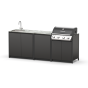 Барбекю комплексы — это современные уличные конструкции, которые станут идеальным решением для приготовления разнообразных блюд и качественного отдыха на природе. На такой кухне сборного типа есть все самое необходимое. Ее комплектация зависит от предпочтений и требований хозяев. Модульные барбекю зоны могут быть оснащены газовым грилем, плитой, мойкой, рабочей поверхностью и вместительными ящиками для хранения. Этого арсенала вполне достаточно для того, чтобы готовить вкусные и сочные шедевры кулинарии. Сборные барбекю комплексы изготовлены из прочных и долговечных материалов, которые позволяют готовой конструкции оставаться устойчивой к разного рода воздействиям в любое время года. Она не боится влаги, солнечных лучей и механического воздействия. Благодаря этому, можно использовать барбекю комплексы от производителя круглогодично, не переживая эксплуатационные свойства и внешний вид изделия. Барбекю зоны выполнены в стиле лофт, что отвечает всем актуальным тенденциям ландшафтного дизайна. Такие современные конструкции выглядят стильно, лаконично и станут настоящим украшением для дачи, беседки, террасы, загородного дома.За счет того, что конструкция сборная, она может быть абсолютно индивидуальной. Каждый хозяин сможет выбрать необходимую комплектацию, которая позволит наслаждаться пространством в полной мере. Больше не нужно бегать в дом за всем необходимым, потому что все самое важное находится по рукой.