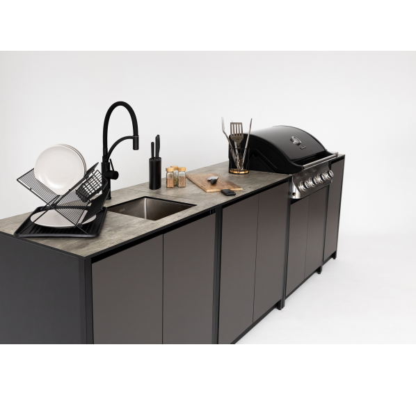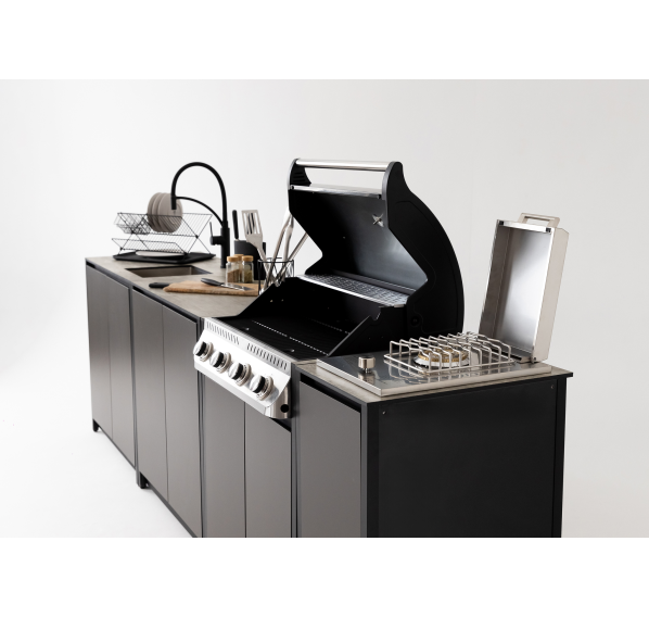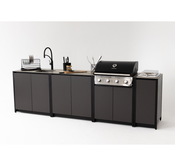 Барбекю комплексы — это современные уличные конструкции, которые станут идеальным решением для приготовления разнообразных блюд и качественного отдыха на природе. На такой кухне сборного типа есть все самое необходимое. Ее комплектация зависит от предпочтений и требований хозяев. Модульные барбекю зоны могут быть оснащены газовым грилем, плитой, мойкой, рабочей поверхностью и вместительными ящиками для хранения. Этого арсенала вполне достаточно для того, чтобы готовить вкусные и сочные шедевры кулинарии. Сборные барбекю комплексы изготовлены из прочных и долговечных материалов, которые позволяют готовой конструкции оставаться устойчивой к разного рода воздействиям в любое время года. Она не боится влаги, солнечных лучей и механического воздействия. Благодаря этому, можно использовать барбекю комплексы от производителя круглогодично, не переживая эксплуатационные свойства и внешний вид изделия. Барбекю зоны выполнены в стиле лофт, что отвечает всем актуальным тенденциям ландшафтного дизайна. Такие современные конструкции выглядят стильно, лаконично и станут настоящим украшением для дачи, беседки, террасы, загородного дома.За счет того, что конструкция сборная, она может быть абсолютно индивидуальной. Каждый хозяин сможет выбрать необходимую комплектацию, которая позволит наслаждаться пространством в полной мере. Больше не нужно бегать в дом за всем необходимым, потому что все самое важное находится по рукой.