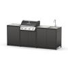 Преимущество таких конструкций: многофункциональность. В его комплектацию входят полноценная рабочая зона, мойка, множество мест для хранения и гриль на углях. Все это позволяет использовать мангальный комплекс барбекю без необходимости постоянно ходить в дом за всем необходимым.