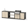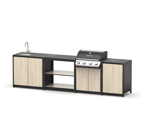 Преимущество таких конструкций: многофункциональность. В его комплектацию входят полноценная рабочая зона, мойка, множество мест для хранения и гриль на углях. Все это позволяет использовать мангальный комплекс барбекю без необходимости постоянно ходить в дом за всем необходимым.