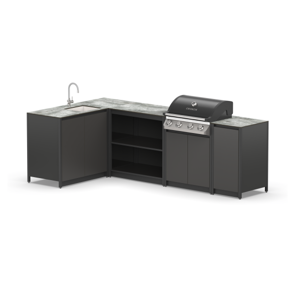 Барбекю комплексы — это современные уличные конструкции, которые станут идеальным решением для приготовления разнообразных блюд и качественного отдыха на природе. На такой кухне сборного типа есть все самое необходимое. Ее комплектация зависит от предпочтений и требований хозяев. Модульные барбекю зоны могут быть оснащены газовым грилем, плитой, мойкой, рабочей поверхностью и вместительными ящиками для хранения. Этого арсенала вполне достаточно для того, чтобы готовить вкусные и сочные шедевры кулинарии. Сборные барбекю комплексы изготовлены из прочных и долговечных материалов, которые позволяют готовой конструкции оставаться устойчивой к разного рода воздействиям в любое время года. Она не боится влаги, солнечных лучей и механического воздействия. Благодаря этому, можно использовать барбекю комплексы от производителя круглогодично, не переживая эксплуатационные свойства и внешний вид изделия. Барбекю зоны выполнены в стиле лофт, что отвечает всем актуальным тенденциям ландшафтного дизайна. Такие современные конструкции выглядят стильно, лаконично и станут настоящим украшением для дачи, беседки, террасы, загородного дома.За счет того, что конструкция сборная, она может быть абсолютно индивидуальной. Каждый хозяин сможет выбрать необходимую комплектацию, которая позволит наслаждаться пространством в полной мере. Больше не нужно бегать в дом за всем необходимым, потому что все самое важное находится по рукой.