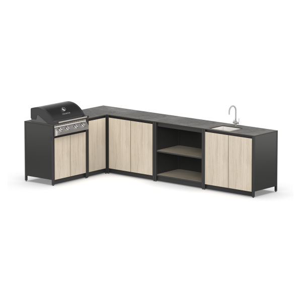 Преимущество таких конструкций: многофункциональность. В его комплектацию входят полноценная рабочая зона, мойка, множество мест для хранения и гриль на углях. Все это позволяет использовать мангальный комплекс барбекю без необходимости постоянно ходить в дом за всем необходимым.