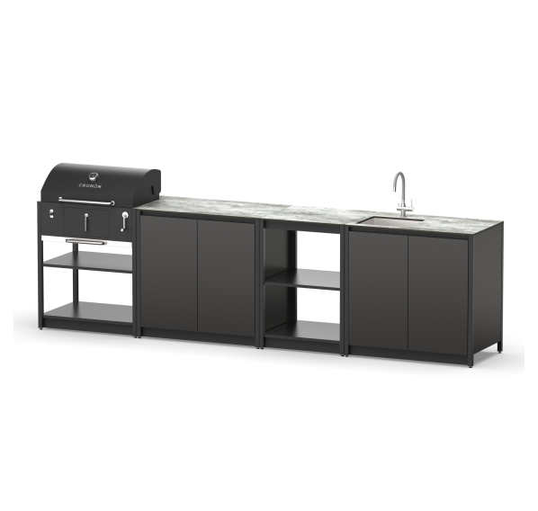 Барбекю комплексы — это современные уличные конструкции, которые станут идеальным решением для приготовления разнообразных блюд и качественного отдыха на природе. На такой кухне сборного типа есть все самое необходимое. Ее комплектация зависит от предпочтений и требований хозяев. Модульные барбекю зоны могут быть оснащены газовым грилем, плитой, мойкой, рабочей поверхностью и вместительными ящиками для хранения. Этого арсенала вполне достаточно для того, чтобы готовить вкусные и сочные шедевры кулинарии. Сборные барбекю комплексы изготовлены из прочных и долговечных материалов, которые позволяют готовой конструкции оставаться устойчивой к разного рода воздействиям в любое время года. Она не боится влаги, солнечных лучей и механического воздействия. Благодаря этому, можно использовать барбекю комплексы от производителя круглогодично, не переживая эксплуатационные свойства и внешний вид изделия. Барбекю зоны выполнены в стиле лофт, что отвечает всем актуальным тенденциям ландшафтного дизайна. Такие современные конструкции выглядят стильно, лаконично и станут настоящим украшением для дачи, беседки, террасы, загородного дома.За счет того, что конструкция сборная, она может быть абсолютно индивидуальной. Каждый хозяин сможет выбрать необходимую комплектацию, которая позволит наслаждаться пространством в полной мере. Больше не нужно бегать в дом за всем необходимым, потому что все самое важное находится по рукой.