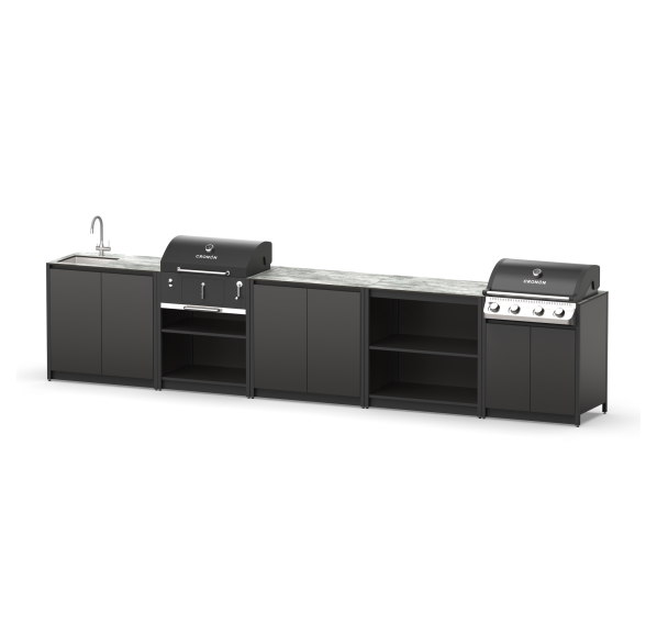 Барбекю комплексы — это современные уличные конструкции, которые станут идеальным решением для приготовления разнообразных блюд и качественного отдыха на природе. На такой кухне сборного типа есть все самое необходимое. Ее комплектация зависит от предпочтений и требований хозяев. Модульные барбекю зоны могут быть оснащены газовым грилем, плитой, мойкой, рабочей поверхностью и вместительными ящиками для хранения. Этого арсенала вполне достаточно для того, чтобы готовить вкусные и сочные шедевры кулинарии. Сборные барбекю комплексы изготовлены из прочных и долговечных материалов, которые позволяют готовой конструкции оставаться устойчивой к разного рода воздействиям в любое время года. Она не боится влаги, солнечных лучей и механического воздействия. Благодаря этому, можно использовать барбекю комплексы от производителя круглогодично, не переживая эксплуатационные свойства и внешний вид изделия. Барбекю зоны выполнены в стиле лофт, что отвечает всем актуальным тенденциям ландшафтного дизайна. Такие современные конструкции выглядят стильно, лаконично и станут настоящим украшением для дачи, беседки, террасы, загородного дома.За счет того, что конструкция сборная, она может быть абсолютно индивидуальной. Каждый хозяин сможет выбрать необходимую комплектацию, которая позволит наслаждаться пространством в полной мере. Больше не нужно бегать в дом за всем необходимым, потому что все самое важное находится по рукой.
