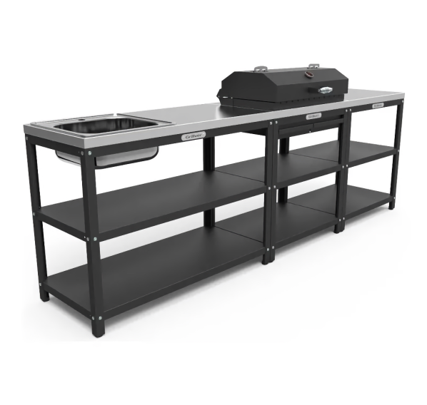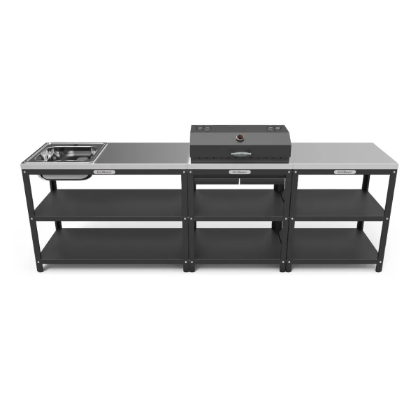 стол, мангал, крышка, решётка-гриль, разделочный стол - 2 шт., мойка, выпуск, сифон, крепёж