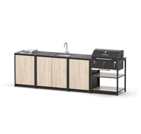Преимущество таких конструкций: многофункциональность. В его комплектацию входят полноценная рабочая зона, мойка, множество мест для хранения и гриль на углях. Все это позволяет использовать мангальный комплекс барбекю без необходимости постоянно ходить в дом за всем необходимым.