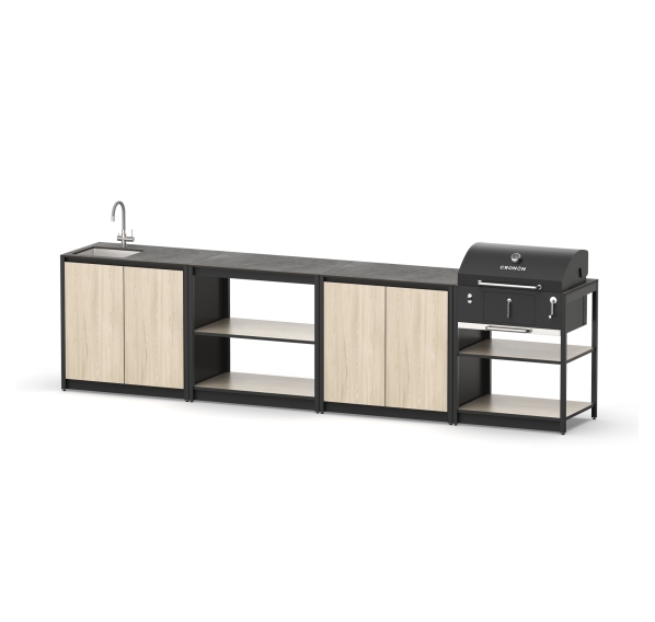 гриль, решётка-гриль, разделочный стол, шкаф - 2 шт., мойка, выпуск, сифон