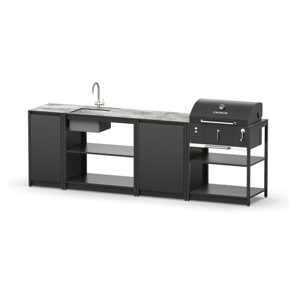 Гарнитур уличной кухни Cronon Lounge — идеальное решение для комфортного отдыха на свежем воздухе! Благодаря водонепроницаемым материалам (HPL-каркасу и столешнице) выдерживает любые погодные условия. Регулируемые ножки обеспечивают устойчивость даже на неровных поверхностях. Встроенная мойка из нержавеющей стали упрощает процесс готовки и уборки. Идеально дополнит территорию дачи или загородного дома.
