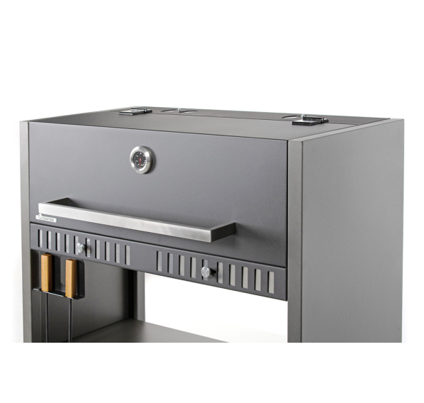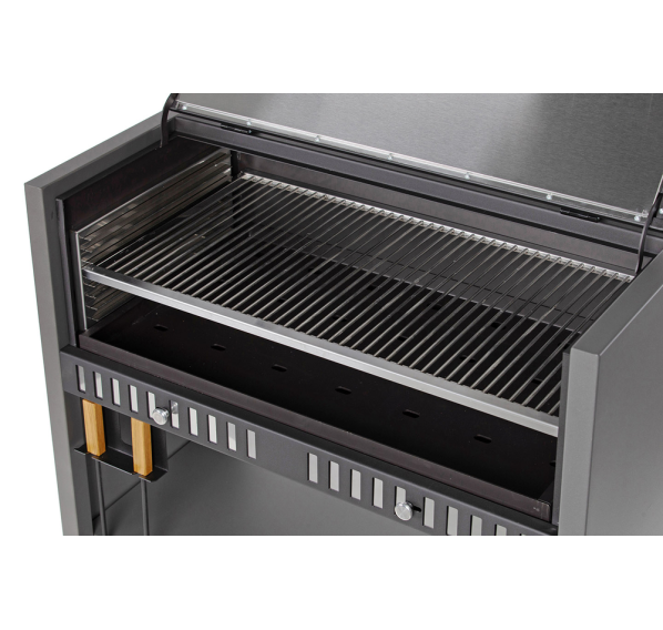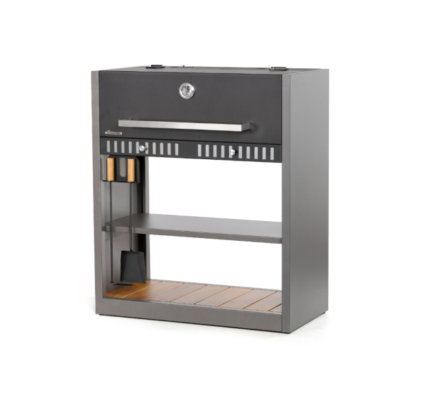 Гриль Gratar Expert — удобный и практичный угольный гриль, состоящий из основания с двумя полками: деревянной и металлической. Для удобства хранения габаритных аксессуаров металлическая полка имеет два положения высоты.