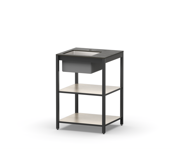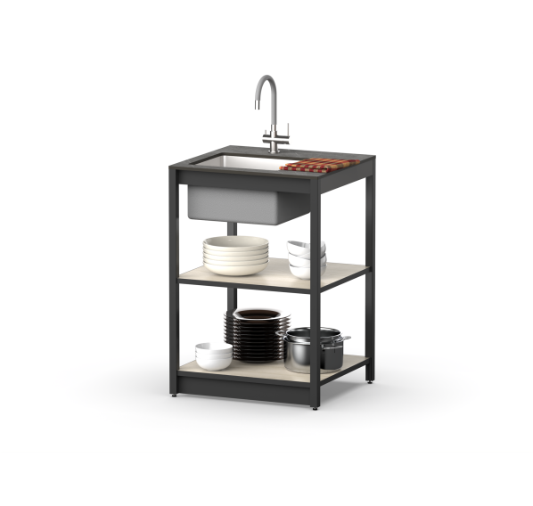 Алюминиевый профиль, влагостойкая столешница и полки из HPL пластика гарантируют долгий срок службы. Регулируемые ножки позволяют настроить высоту по своему удобству. Дизайн коллекции Lounge добавит элегантности Вашему интерьеру!