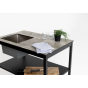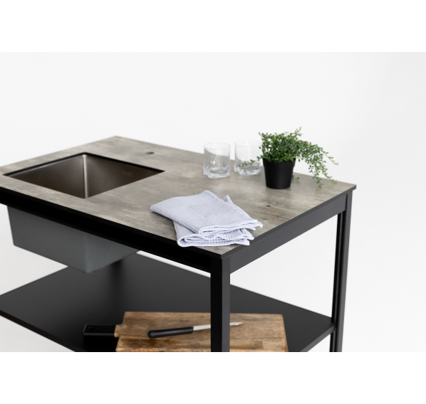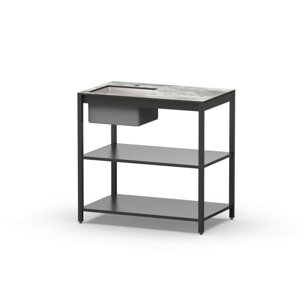 Алюминиевый профиль, влагостойкая столешница и полки из HPL пластика гарантируют долгий срок службы. Регулируемые ножки позволяют настроить высоту по своему удобству. Дизайн коллекции Lounge добавит элегантности Вашему интерьеру!