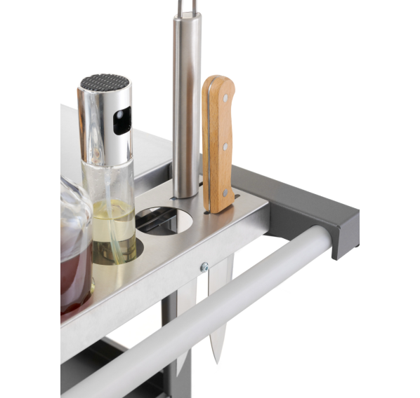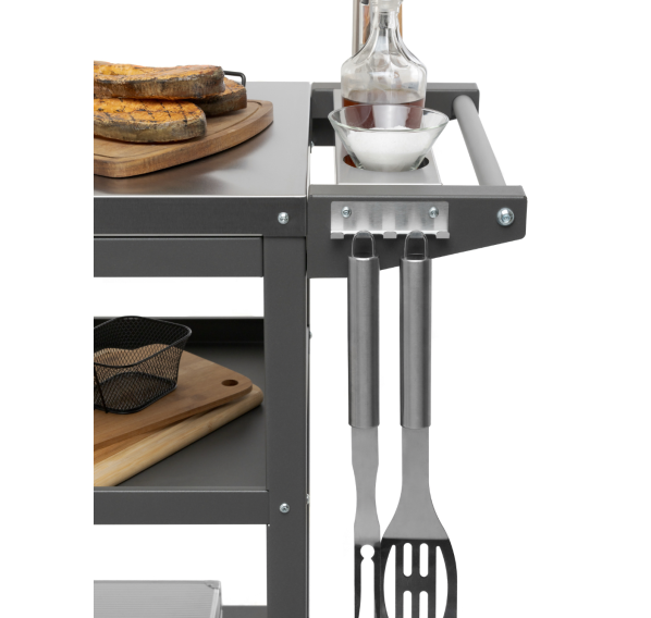 Передвижной стол Gratar Patio — это практичное передвижное устройство, предназначенное специально для удобства готовки на улице, будь то праздник, отдых на природе или семейная встреча. Компактный и функциональный, он облегчает процесс приготовления и сервировки пищи, превращаясь в незаменимого помощника на любых мероприятиях вне дома.