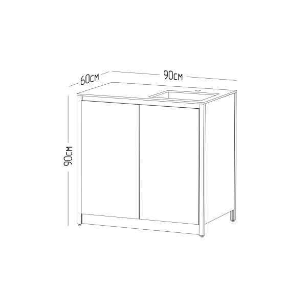 Сочетание алюминиевого каркаса, влагостойких материалов и нержавеющей стали обеспечивает долгий срок службы конструкции. Регулируемые ножки позволяют легко подстроить шкаф под любую поверхность. В комплекте уже есть сифон, что делает установку быстрой и удобной.