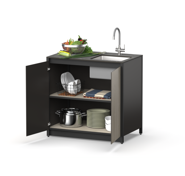 Шкаф напольный с мойкой Lounge от бренда Cronon — стильное и функциональное решение для Вашего уличного и домашнего пространства.
