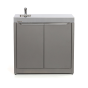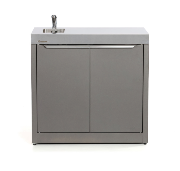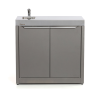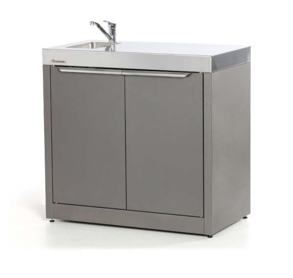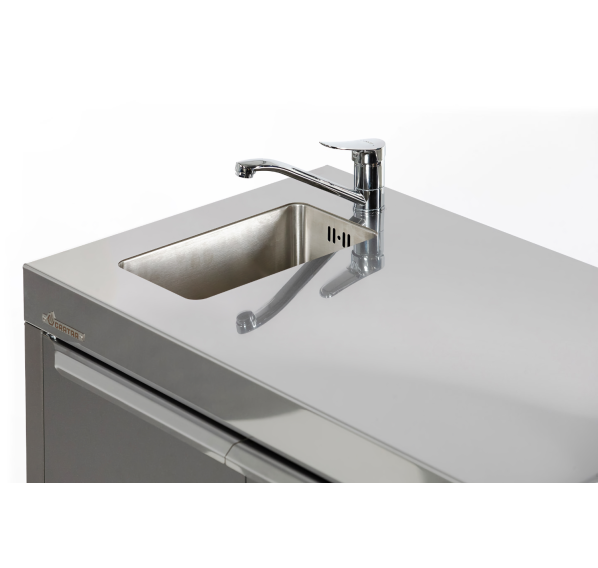 Тумба с мойкой Gratar Expert превращает зону барбекю в настоящую уличную кухню. Долговечная столешница из нержавеющей стали и несколько полок позволят разместить всё необходимое для приготовления блюд. Для удобства хранения габаритных аксессуаров металлическая полка имеет два положения высоты, а сама тумба оснащена дверками. Встроенная мойка из нержавеющей стали с шумоподавлением и сифоном.